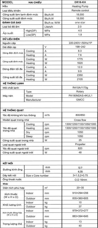 Điều hòa treo tường 1 chiều DAIRRY DR18-LKC